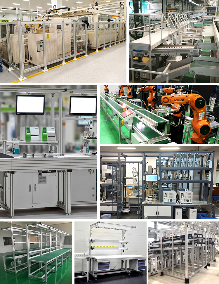 É amplamente utilizado no sistema de quadros, linha de montagem, transportadores, bancada de trabalho, guardas de máquinas, escadas e plataformas, cerca de metal, rack de exibição, automotivo, alojamento de alumínio motor, sistema de ponte, embarcação, elevador, impressoras 3D, gravadores CNC, não-padrão Automação, máquinas de arame quente, automação, cortadores de laser, controles deslizantes de câmera, bancada ou mesa de trabalho, robótica, Quadros de máquinas, guardas de máquinas, etc.